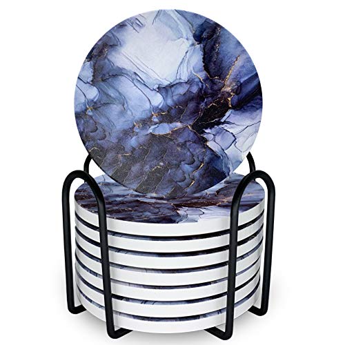Top Brands Coasters for Drinks Absorbent with Holder Set of 8, Drink Coasters with Cork Base, Marble /Glass/ Wooden Table Protection, Home/Bar/Living Room Decor, Housewarming Gift